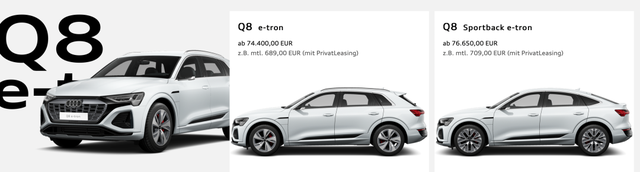 奥迪Q8e-tron在德国的起售价为74400欧元,约人民币54.87万元。
