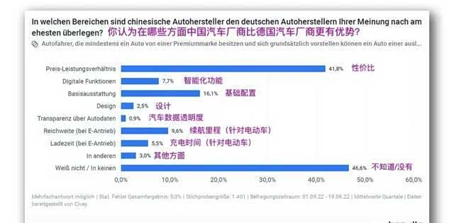 比如说,在1000名受访者中,有45%的人认为“中国车企能在德国市场占得一席之地,并能与德国市场建立起长期合作关系”。