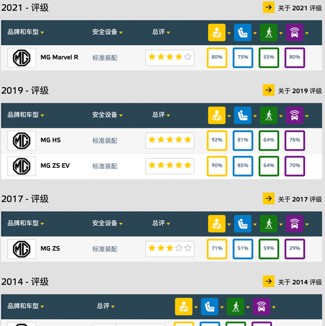 名爵的电动化车型在欧洲NCAP碰撞测试中都获得不错的成绩。