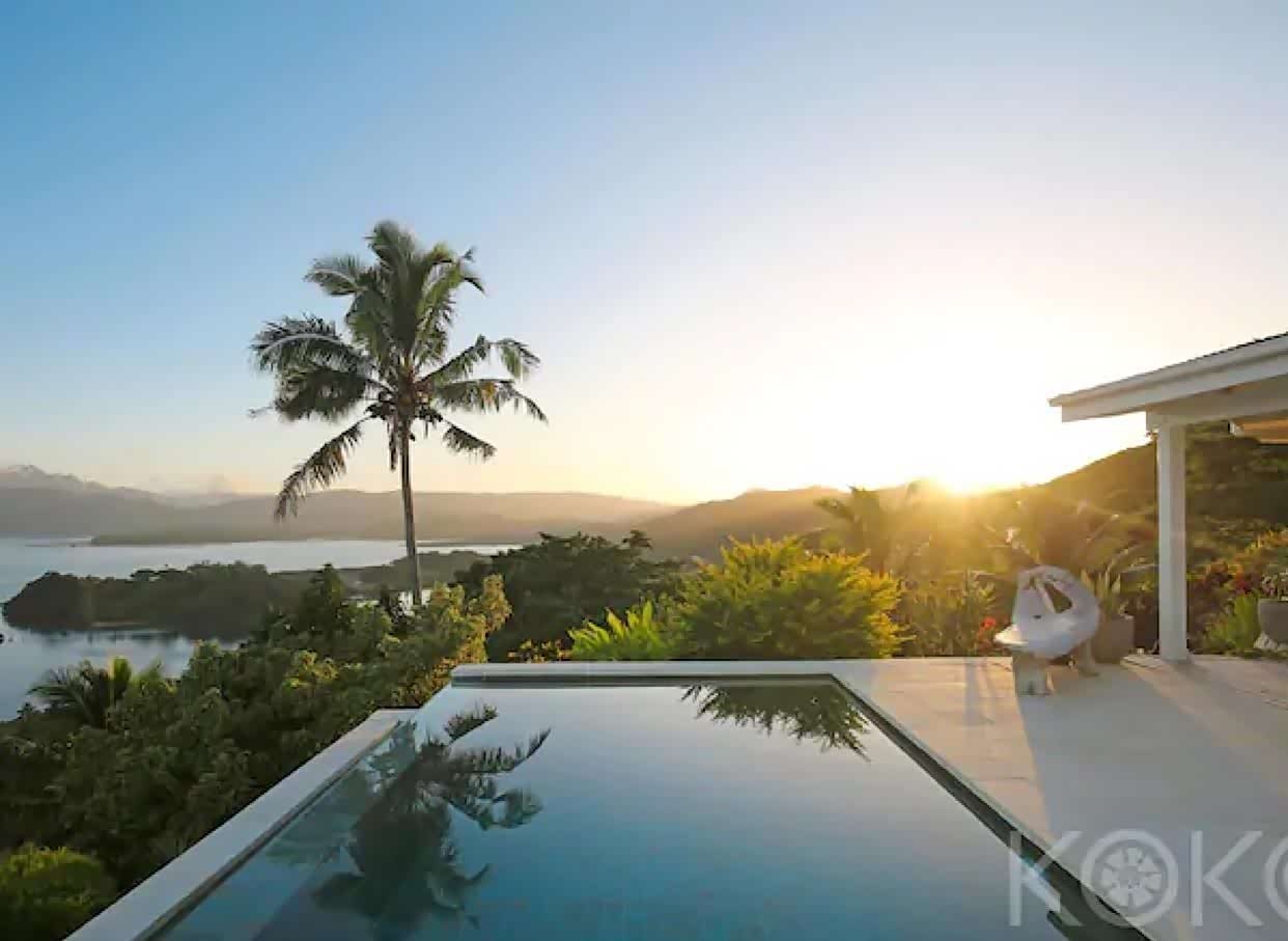美得令人窒息,光是欣赏这栋山腰蜜月别墅的照片,就能将270度的壮丽海景尽收眼底,足以让人心旷神怡。KOKO Savusavu 海景泳池蜜月别墅是斐济最适合蜜月旅行者的 Airbnb 之一, 堪称乡村奢华的巅峰之作。