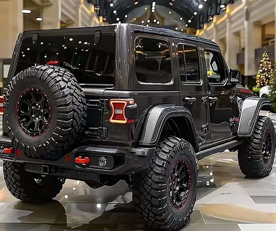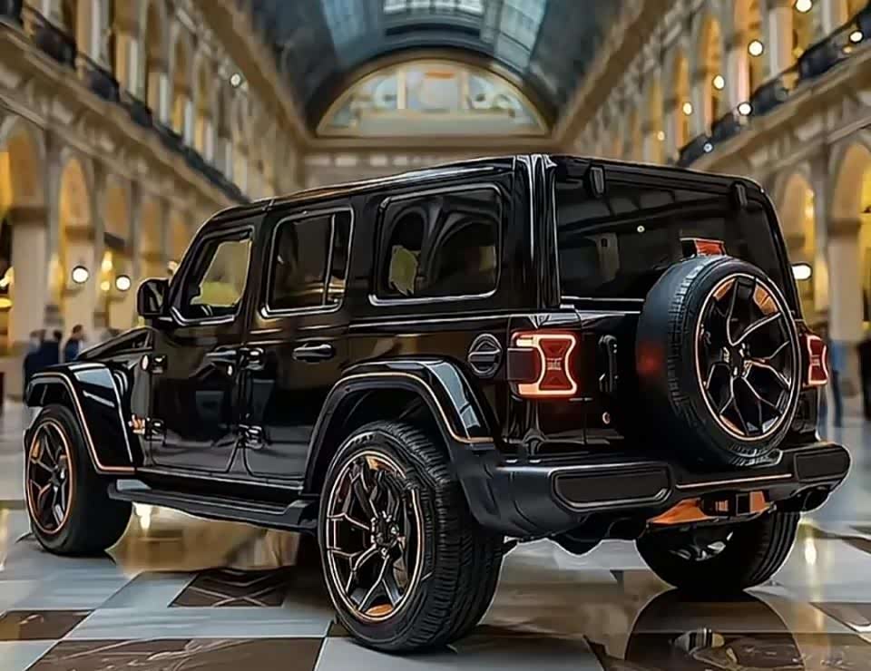 来到侧面,我们看到了更大尺寸的轮眉,而其它设计则与现款“牧马人”差别不大 车门以及玻璃的造型还算比较规整,整个宽体车身效果并不明显,但对于整部车来讲却起到点睛之笔。匹配33英寸全地形轮胎,加上更大的离地间距,使得新车的通过性大大提升。尾部上,保留了外挂式备胎,以往的方形尾灯也做出调整,这样力量感中也增添了些时尚性,后包围则与车头形成呼应,整个排气全部采用了隐藏处理。