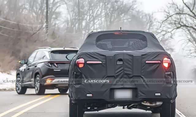 现代似乎调整了前格栅。当前型号的LED灯在顶部扩展,形成一个V形,而伪装型号的灯不会向底部变窄,这表明格栅将比现有型号更加偏长方形。此外,格栅的非照明部分也排列整齐,看起来更大,这与更新的途胜不同。这表明现代汽车正试图调整Santa Cruz皮卡的前脸,使其看起来更加方正更像皮卡。