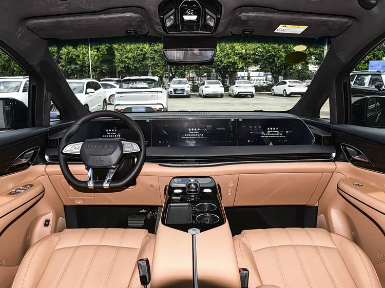 进入车内,新车内饰主打豪华智能与舒适实用,以“家用商务双适配”为核心,整体风格简约大气,质感出众,中控台布局规整,操作便捷,核心区域配备41英寸智能超清三联屏(12.3英寸仪表+16.2英寸中控屏+12.3英寸副驾屏),搭载高通骁龙8155芯片与腾讯TAI 4.0系统,操作流畅无卡顿,语音响应速度快,空间方面,新车采用2+2+3七座布局,3018mm的长轴距让车内空间充裕,前排驾驶位头部空间约980mm,即便身高185cm的驾驶者也不会感到压抑,第二排作为核心舒适区,配备独立航空座椅,支持通风、加热、按摩功能。