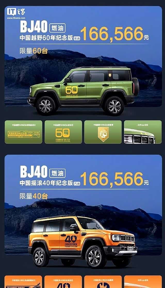 前者限量60台,是为了致敬北京汽车制造厂自上世纪六十年代以来,在中国越野车领域的光辉历史。