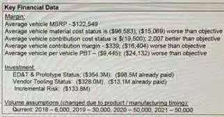 “单车物料成本现状九万六千多美元、目标值降低1万5千多美元”