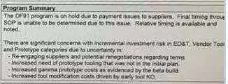 「There are significant concerns with incremental investment risk in ED&T, Vendor Tooling and Prototype categories due to uncertainty in: