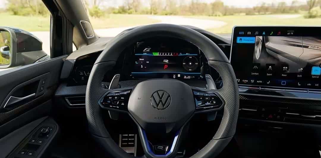 动力绝对是2025款高尔夫R的一大亮点,它搭载代号为EA888 LK3 evo4的2.0T四缸高功率发动机,最大功率可达333马力,峰值扭矩420牛·米。与之匹配的是7速双离合变速箱,并配备4MOTION四驱系统,这套四驱系统带有R-Performance扭矩矢量控制功能,不仅能在前后轴分配动力,还能在左右车轮间灵活分配,有效减少转向不足,提升操控乐趣。官方百公里加速仅需4.6秒 ,最高车速可达250km/h,选装性能套件后,车速更可提升至270km/h,动力十分强劲。