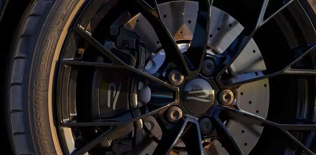 从侧面看,车顶略带弧度,鲨鱼鳍天线更添灵动,贯穿式腰线让车身侧面层次感更加丰富。轮眉和侧裙处的隆起黑色饰板,搭配多幅式熏黑轮毂与大尺寸刹车盘,运动氛围拉满。