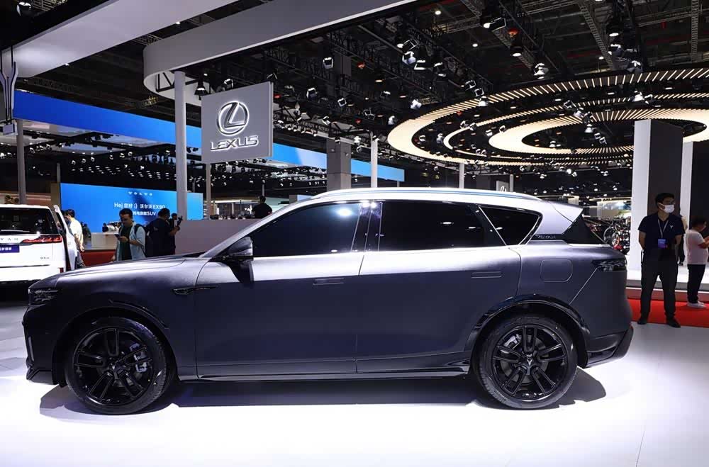 该车型采用了增程器技术体系,因此其前脸设计并未采用典型的新势力风格,而是保留了较小尺寸的进气中网。从侧面看,这款SUV的车身姿态较为低矮,配合升降幅度达到100mm的空气悬架,使其在降至最低时,呈现出一种独特的旅行车风格,仿佛散发出瓦罐般的优雅气息。