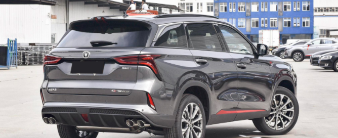 车身尺寸上第三代哈弗H6明显进行了加长,车身尺寸达到了4653*1886*1730mm,轴距更是达到了2738mm,相比老款车型明显大了一圈。车身侧面线条流畅,熏黑处理的轮毂以及在视觉上高耸的尾部,呈现出了极强的视觉效果。尾部圆润敦厚,尾灯组采用了当下流行的贯穿式设计,在点亮的情况下尤为显眼。