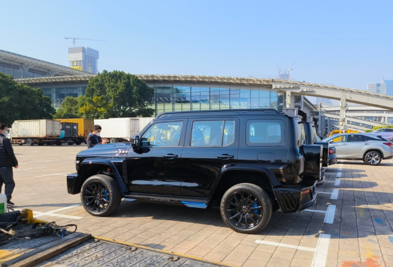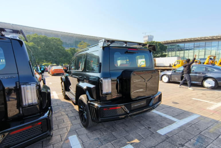 车身侧面,新车延续了普通版车型的硬朗风格,平直的腰线贯穿前后,同时新车还添加了宽体轮眉和大尺寸的密条辐式轮胎,让新车显得更加硬朗大气。车身尺寸方面新车与赛博坦克300保持一致,为4679*1967*1958mm,轴距为2750mm。