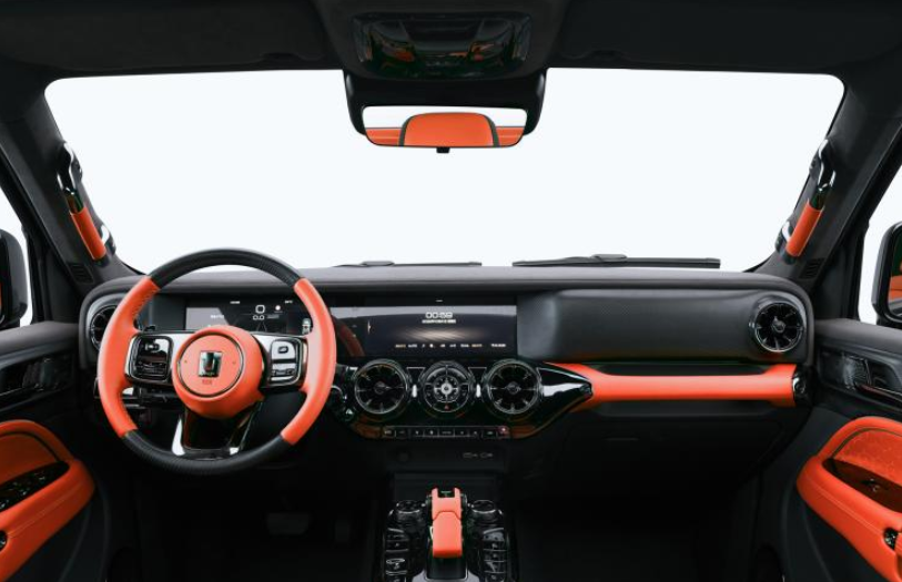 内饰方面,坦克300赛博骑士延续了普通版车型的布局风格,不过在配色方面明显更加大胆,有蓝色和橙色两种不同的版本,橙色内饰更加时尚、动感,而蓝色内饰则更加鲜艳、个性。左侧是皮革材质包裹的三幅式多功能方向盘,前方全液晶仪表盘和中控内嵌式显示屏,空调出风口采用了圆形设计,搭配下方造型精致的挡把,兼顾了科技感与豪华感。