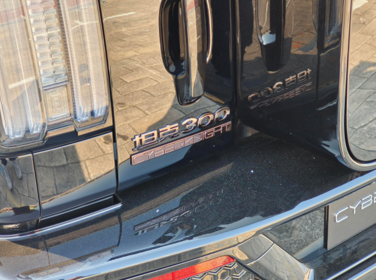 尾部,坦克300赛博骑士明显添加了更多的个性化组件,尾部上方添加了一个碳纤维材质的车顶扰流板,两侧尾灯组依旧是竖向布局,在点亮的情况下能够提供更强的辨识度。中间是越野车专属的外挂式备胎,下方包围的造型也是更加犀利,扩撒器的造型独特,进一步提升了新车的运动感。