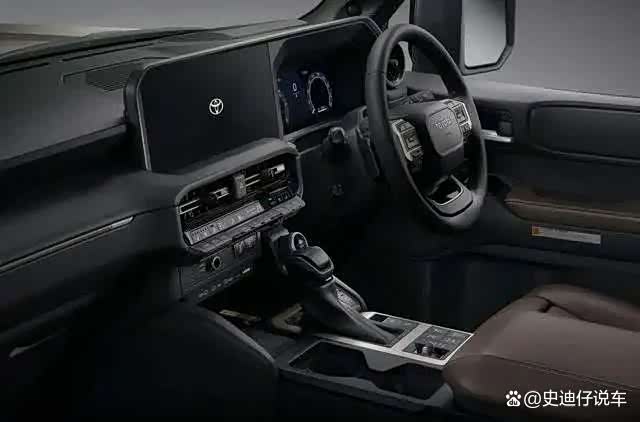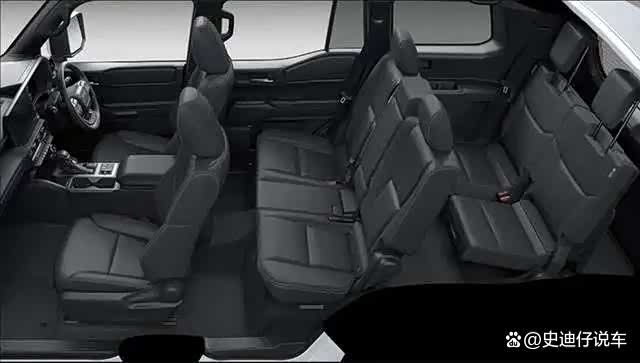 车的右侧装饰着由皮革制成的三幅式多功能方向盘,手感非常舒适。前面的7英寸液晶仪表盘与中央控制区域的12.3英寸悬浮式显示屏,经过部分装饰后,形成了一体化的设计,充满了科技氛围。空调的出风口下方设计了一些物理按键,并与设计精美的挡杆机构相结合,使得操作更为简便。在材料选择上,它采用了大量的柔软材料,并配有缝合线和镀铬装饰。中控台上的众多横向线条和A柱上的扶手都展现了它作为硬派越野SUV的独特之处。在配置上,这款新车搭载了Toyota Safety Sense 3.0系统,并配备了前后碰撞预警、自动停车以及上坡辅助等多种功能。此外,车内设计为2+3+2的7个座位布局,每一个座椅都被皮革材料所覆盖,确保了很好的舒适度。