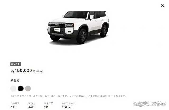 最近,我们从丰田的官方网站了解到,其海外版本的 丰田普拉多(参数|询价)VX已经正式对外发布。这辆新车不只是有7座的设计,它还配备了2.7L的自吸式发动机和6AT的变速器,其在海外的售价为5450000日元,换算成人民币大约是27.2万元。对于这款海外版本的普拉多VX,它的表现到底如何呢?让我们一起去深入探索。