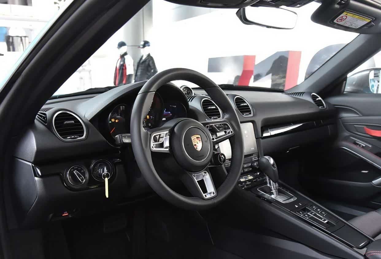 进入车内,2019款保时捷Boxster T内饰保持了该车家族化的设计,看起来运动感十足,采用了黑色饰板以及黑色装饰条,中控台采用非对称性的设计并采用流畅的线条来勾画,在配色方面,该车配备了胎压显示屏、变转向比例、前/后方泊车雷达、 前排头部气囊以及前排侧气帘等。还搭载了一块7英寸的触控液晶屏。