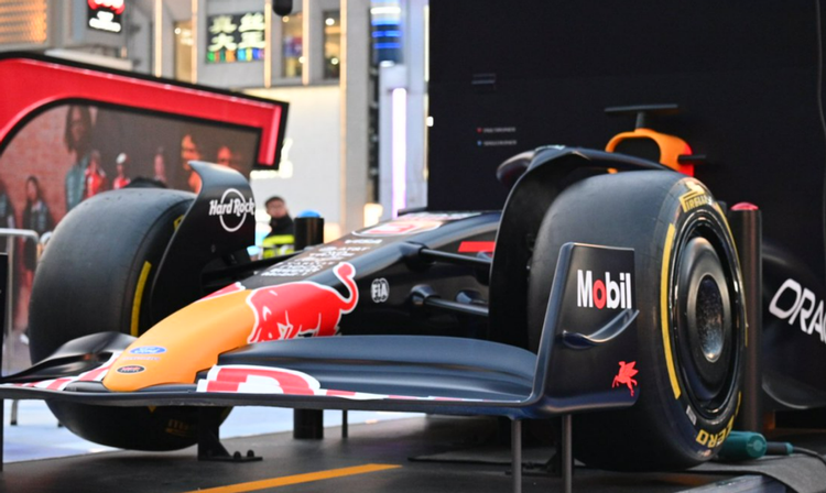 周末开着我的航海家去南京路瞎逛,老远就被世纪广场的红白色F1围栏吸引住了,快闪展台直接把赛场搬来了市中心,热闹到不行!现场还能玩红牛换胎挑战,吭哧吭哧忙活半天,才懂职业车队1.8秒换胎有多离谱,旁边大叔还会热心指导,主打一个沉浸式体验。