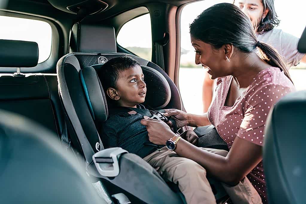 宽大平坦的后座底座可轻松容纳三个儿童座椅,后向式儿童座椅前方的腿部空间足以容纳身高 184 厘米的驾驶员。如果儿童座椅朝前,则更适合身高较高的前排乘客。