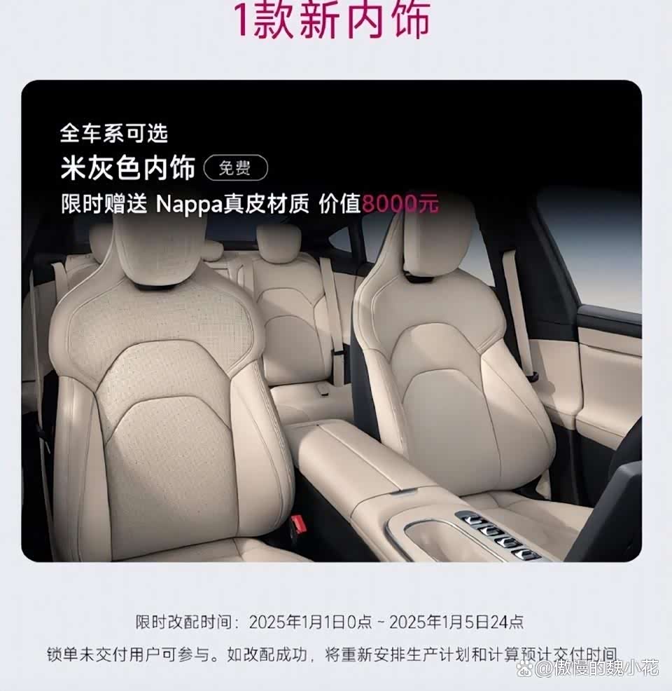 内饰方面,现款的小米SU7全系可选米灰色内饰(免费),限时赠送Nappa真皮材质(价值8000元)。而这款“璀璨洋红”版的内饰将与外观同步,确实不是一般人能够驾驭得了的。至于内部的其它设计与现款完全一致,比如会配备16.1英寸3K分辨率中控屏、56英寸HUD、7.1英寸翻转式仪表屏等等。