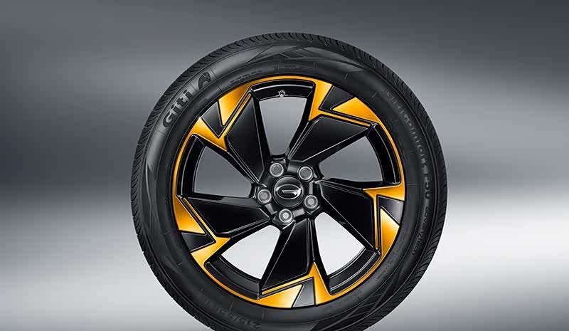 车身侧面,除之前的明黄点缀其它并无太大变化,新车轴距依旧为2560mm。而车尾最为抢眼的同样是多边形的尾灯组,及顶部大尺寸的后扰流板,底部则采用了隐藏式的排气布局。此外,原先的“Trumpchi”英文标识已经被撤下,转而在车尾右下方增加了“POWER”的标识,用以进一步突显新车的身份。