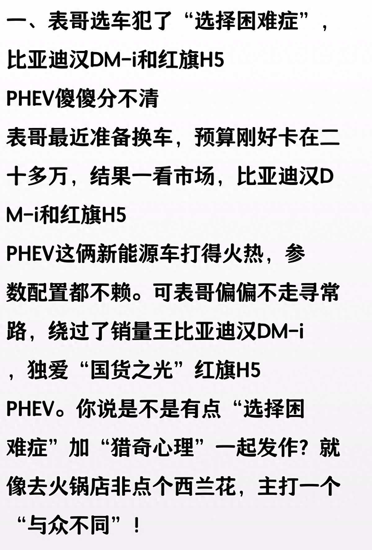 最近陪一位朋友选车,过程可谓波折不断。他原本钟情于比亚迪汉DM-i的口碑与技术,也考虑过 大众帕萨特(参数|询价)这类经典燃油车带来的稳妥感,但最终,手里的钥匙却递向了那抹鲜艳的红旗。这让我不禁好奇,是什么样的特质,让红旗H5 PHEV能在强手如林的混动市场脱颖而出,打动这位挑剔的车主?深入探究一番后,我发现它的魅力绝非偶然,而是建立在几个实实在在、极具吸引力且让人无法轻易拒绝的“硬实力”之上。