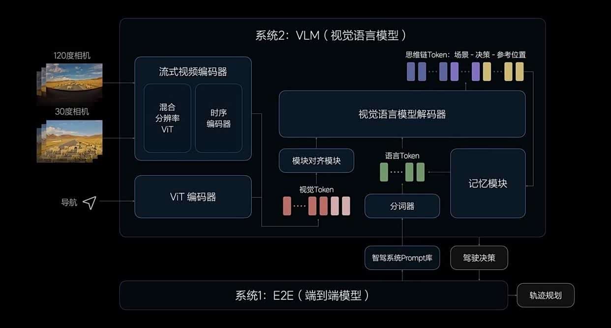 发布会上,理想汽车还披露了基于端到端模型、VLM视觉语言模型和世界模型的全新自动驾驶技术架构,旨在开启智能驾驶的新篇章。此架构支持早鸟计划,将智能驾驶行为拟人化,提高信息处理效率,增强对复杂路况的理解和应对能力。
