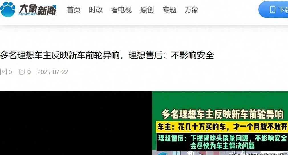 据河南广播电视台旗下大象新闻7月22日报道,一位郑州的理想L8 Pro车主在虎扑社区发帖控诉:6月21日刚花31.88万提车,7月5日就发现前轮异响,“特别是踩刹车时,感觉整个底盘都松散掉了,轱辘要是掉了怎么办? 我现在根本不敢开! ”。 更令人震惊的是,他的遭遇并非个例。