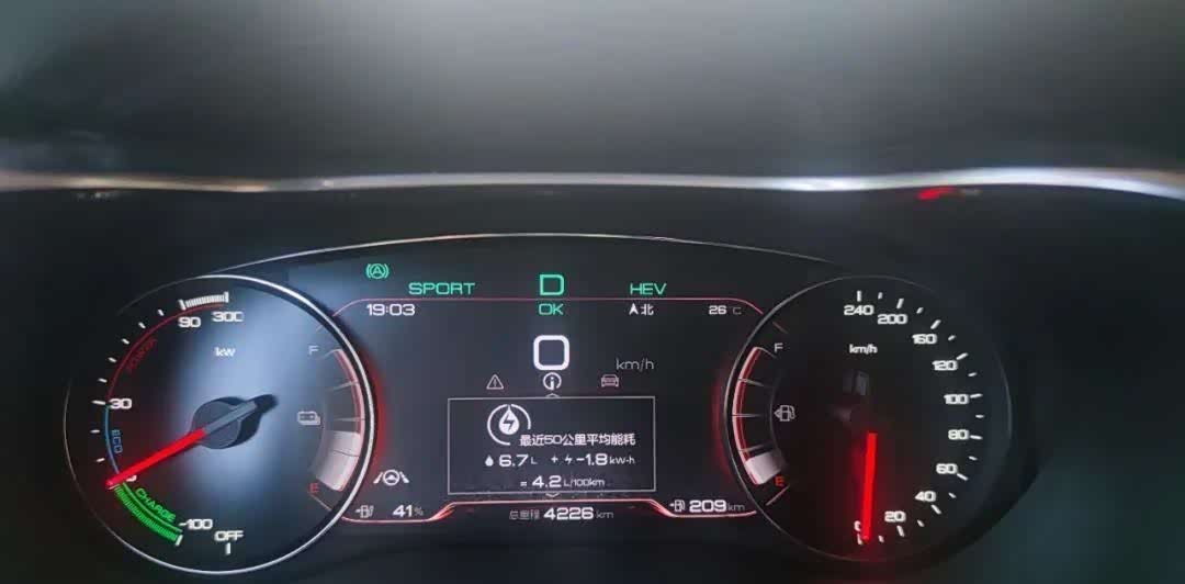 因为车速较慢,再加上有些拥堵,所以上半程这60km,我们用了整整两个小时才跑完,不过成绩出乎了我们所有人的预料:仪表盘显示的匮电油耗为2.7L/100km,另外还给电池补了些电,SOC从出发前的40%提升至42%。