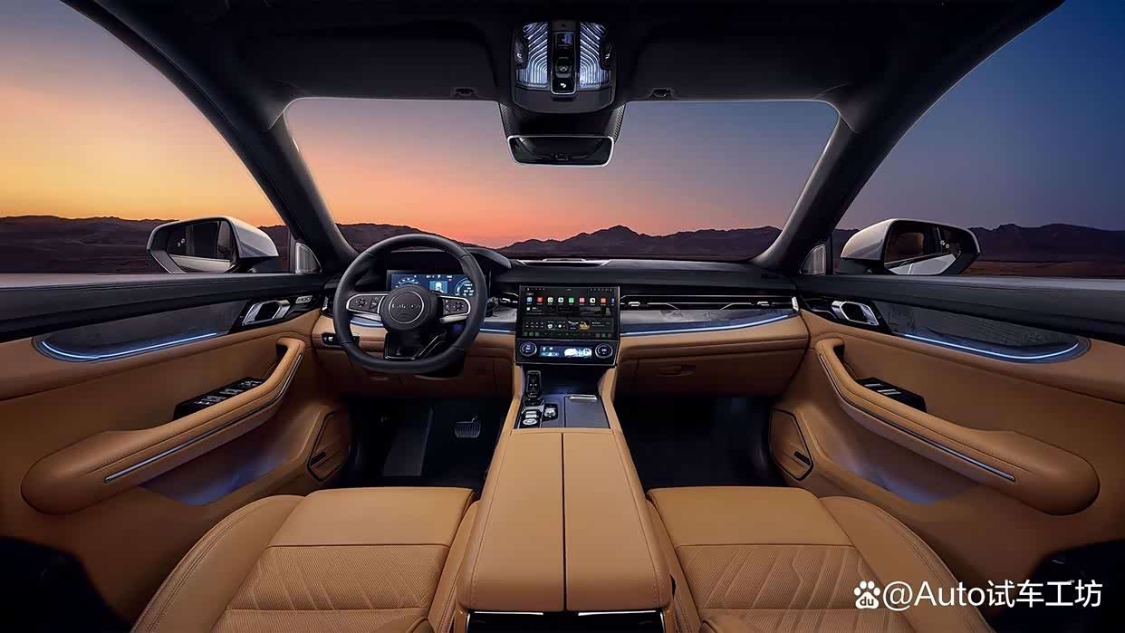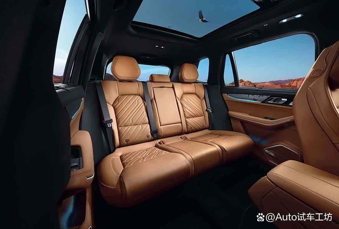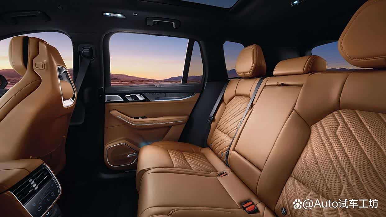 领克09五座版配备了12英寸中控屏,6英寸空调控制屏,8155车机芯片,12.3英寸全液晶仪表盘,真皮座椅,带加热、通风和按摩功能的前排座椅,BOSE音响等等,配置较为丰富。
