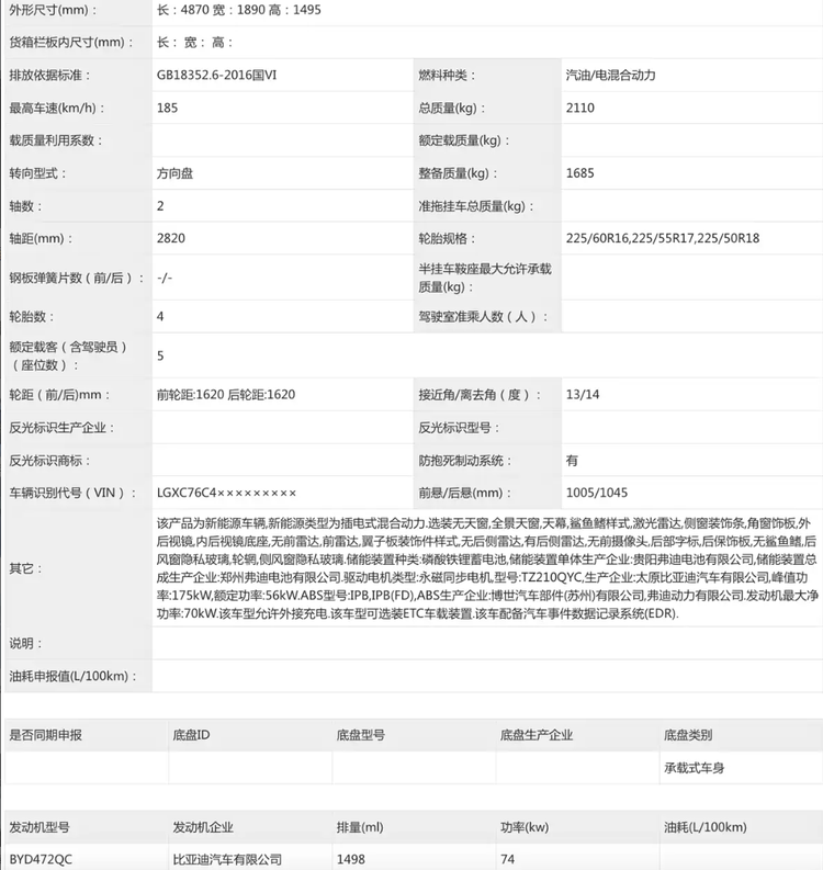 新款比亚迪海豹06 DM-i申报图曝光 搭载第五代DM系统