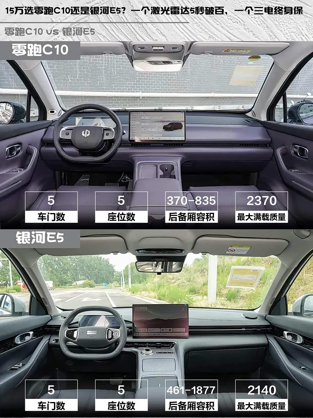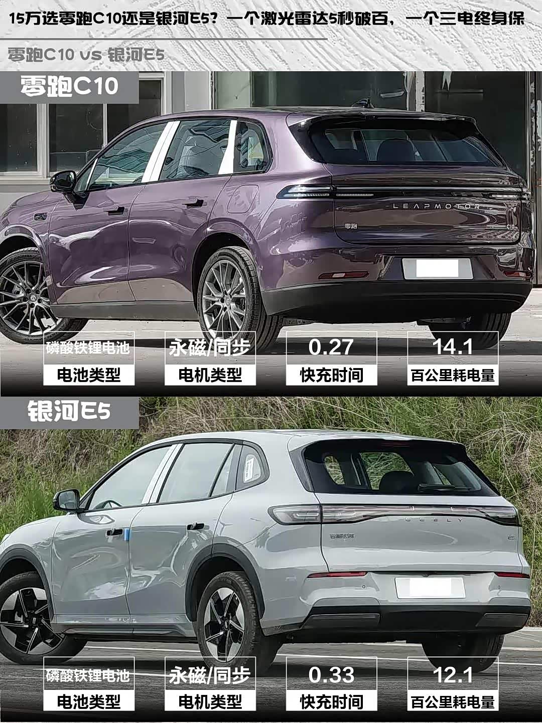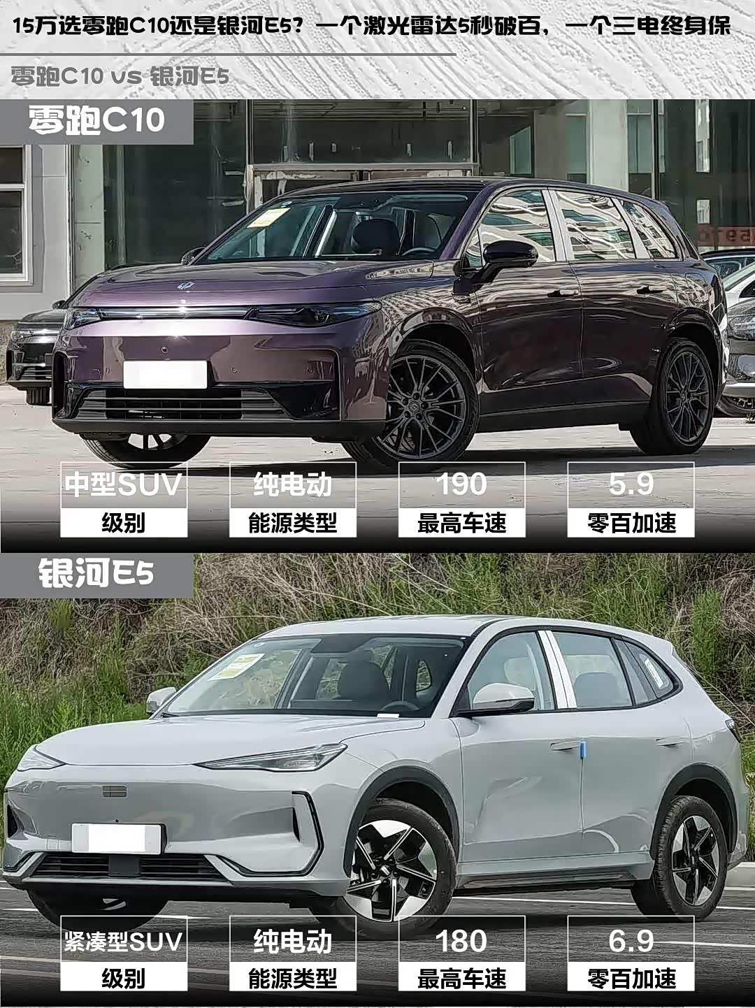 15万选零跑C10还是银河E5?一个激光雷达5秒破百,一个三电终身保