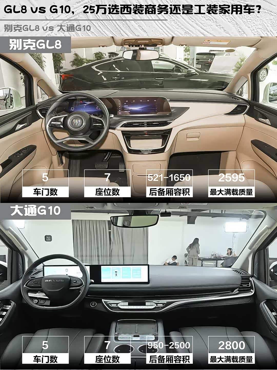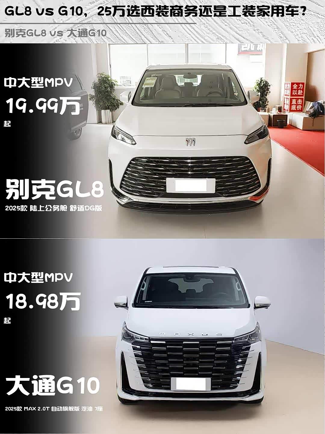 最近后台好多人在问25万级MPV怎么选,刚好深度体验了 别克GL8(参数|询价) 2025款陆上公务舱舒适DG版和大通G10 2025款MAX 2.0T自动旗舰版,掏心窝子说说真实感受👇