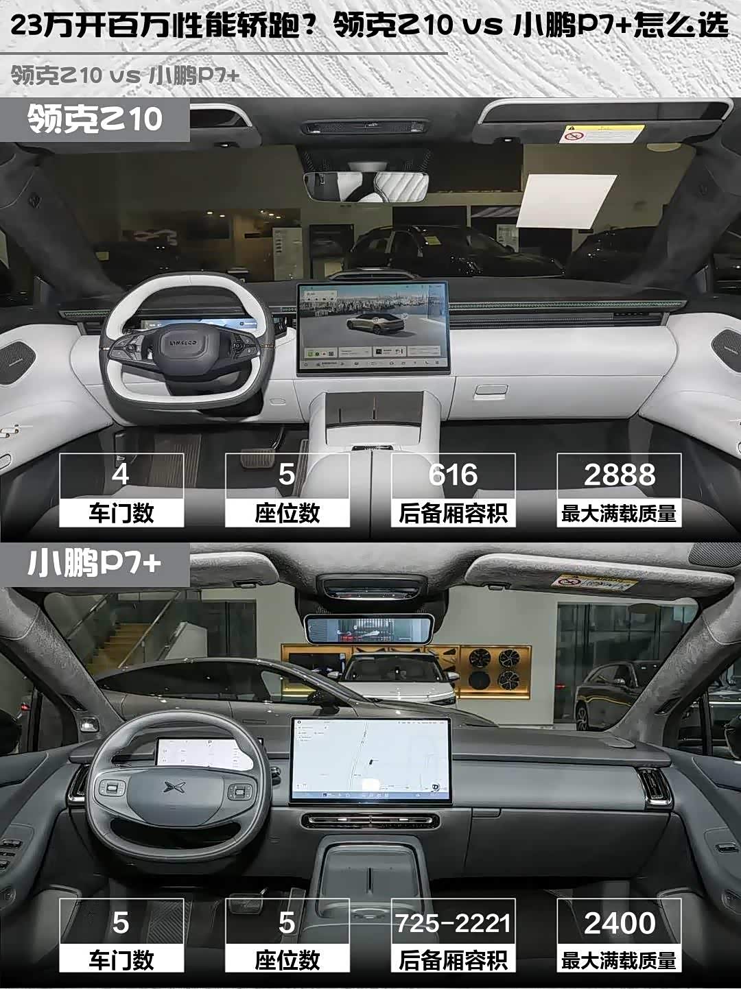 要性能炸裂+续航扎实选领克Z10,23万就能拿下空悬+四驱的百万级体验;更看重智驾+家用属性就选小鹏P7+,18万起步性价比确实能打。两台车都标配了全景天幕和Nappa真皮,但Z10的主动升降尾翼和P7+的流光灯语,你更吃谁的颜值?