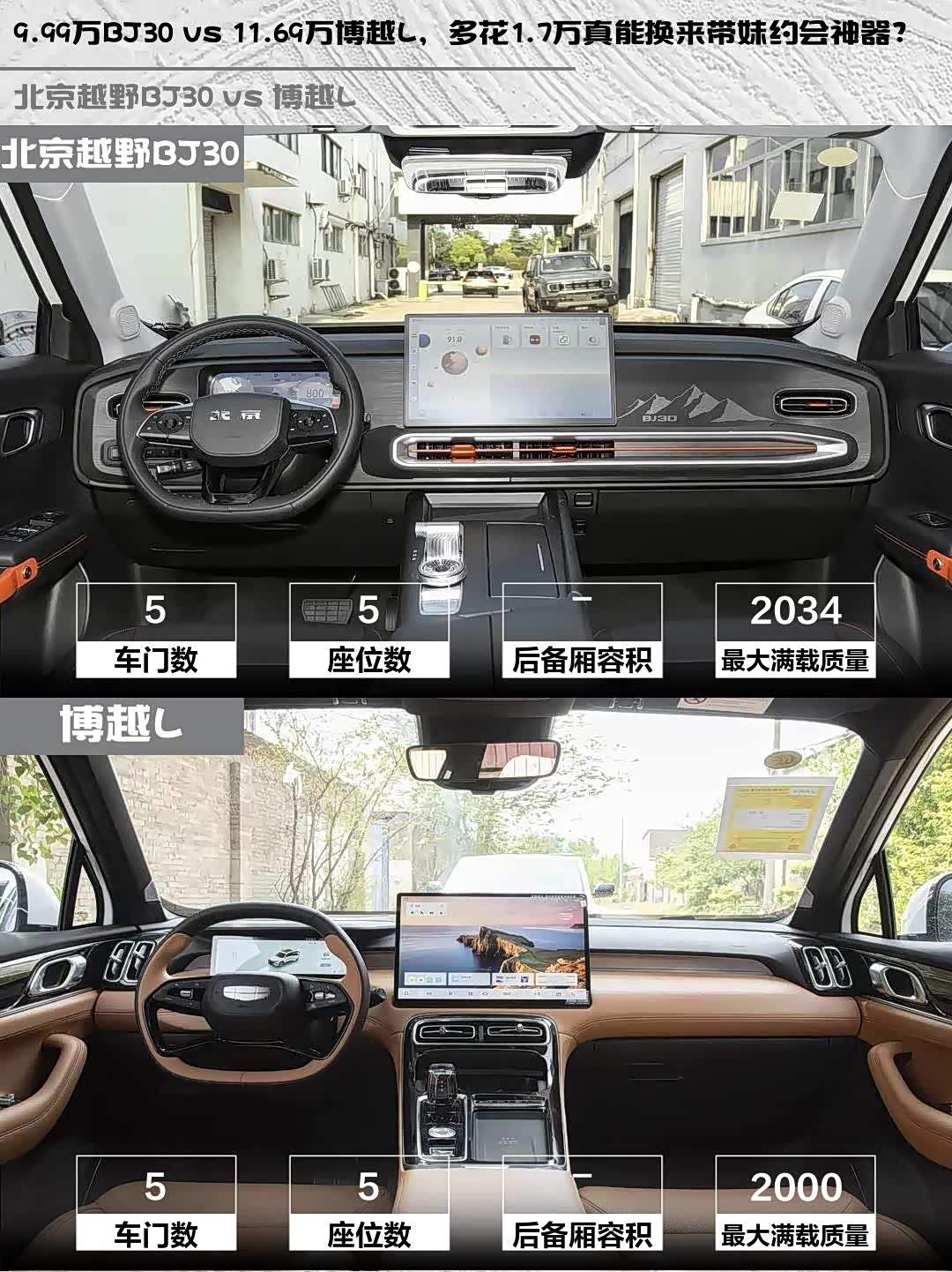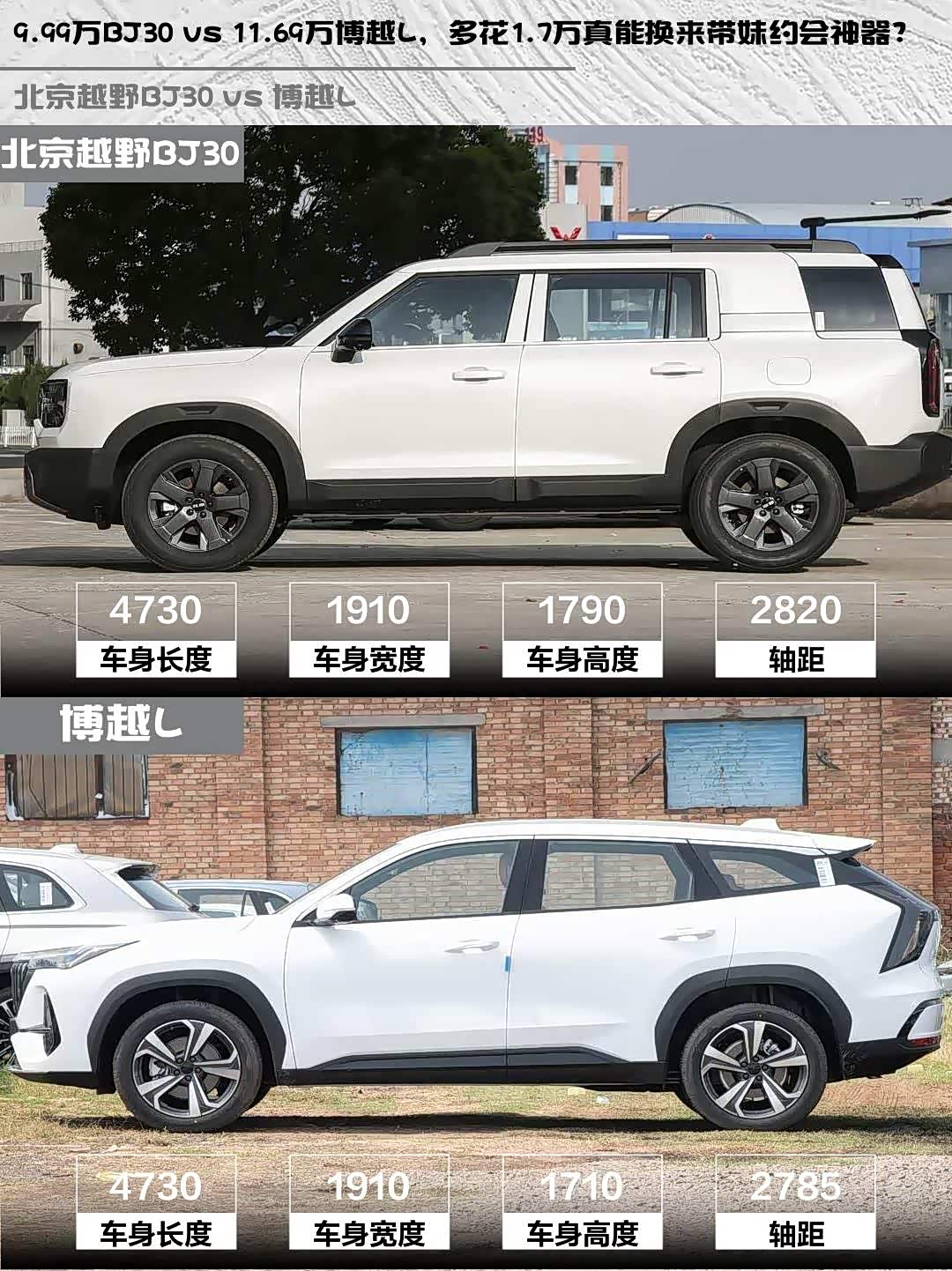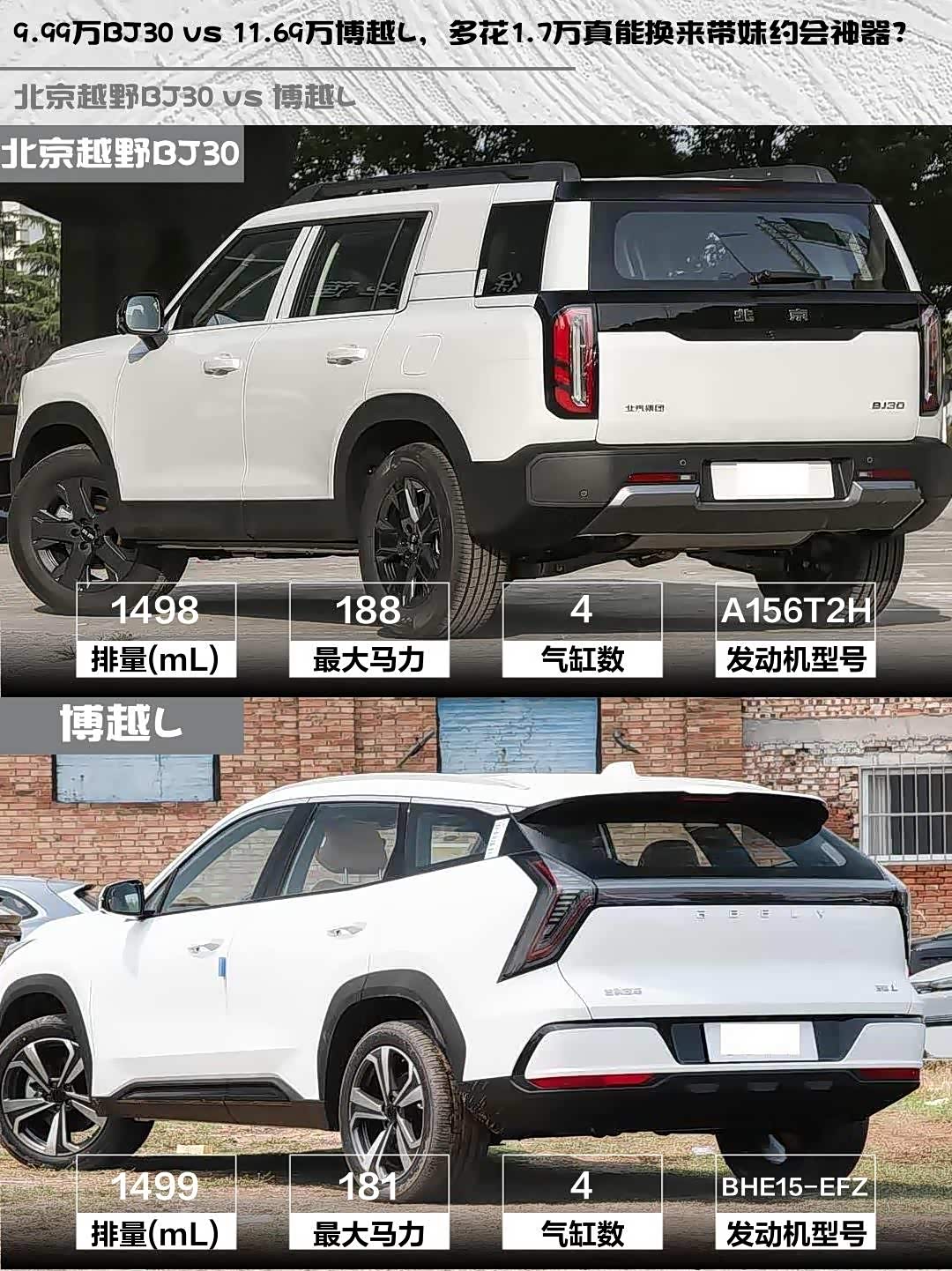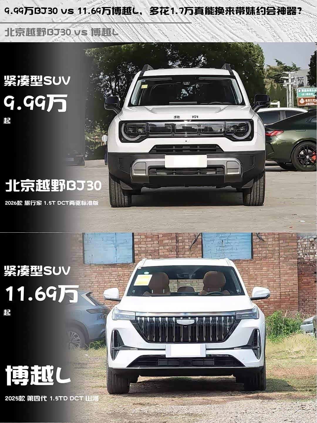 9.99万BJ30 vs 11.69万博越L,多花1.7万真能换来带妹约会神器?