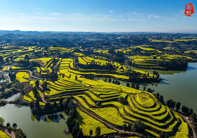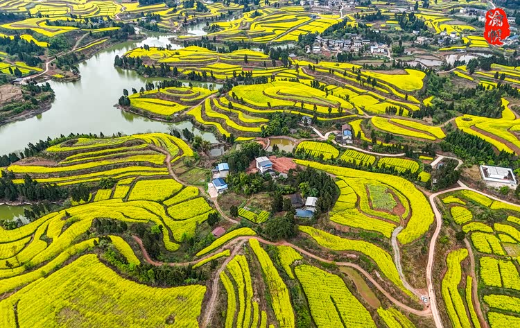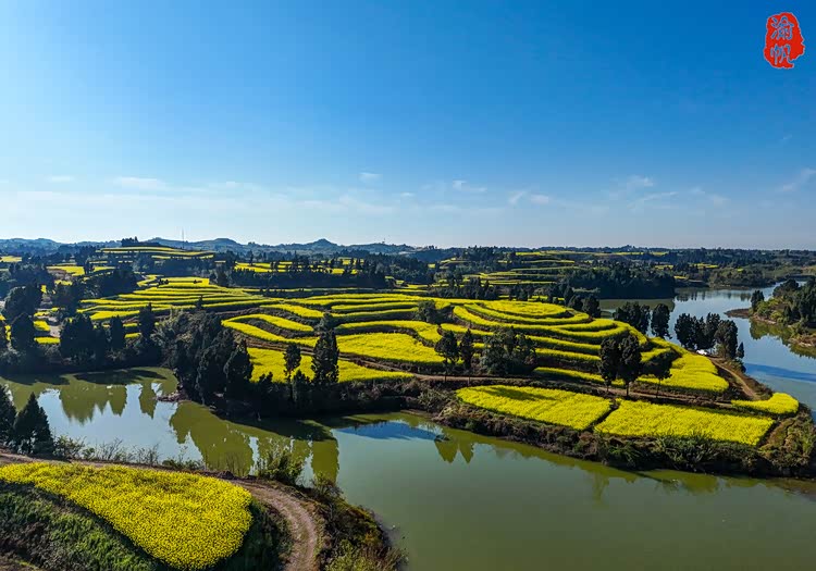 人们常说,重庆的春天从潼南开始,因为潼南崇龛的油菜花被评为中国十大最美油菜花海之一,但是潼南的油菜花却不只有崇龛,在龙形镇丁坝村的民主湖畔,也藏着一片不逊于崇龛的金色梯田。这里没有熙攘的人群,没有商业化的喧嚣,只有春风拂过花浪时的沙沙声,和一汪碧水映着漫山金黄的温柔。偶然闯入这里的我,像发现了被时光遗忘的宝藏,满心都是藏不住的惊喜。