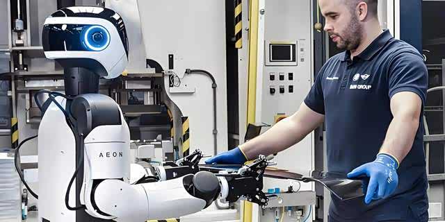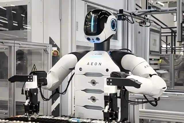 它和传统的工业机械臂完全不同 —— 有躯干、有手臂、有 “眼睛”,甚至能自己走路。搭载 22 个感知传感器和多模态视觉系统,AEON 可以实时评估周围环境,遇到障碍物能像人类一样自主绕行。