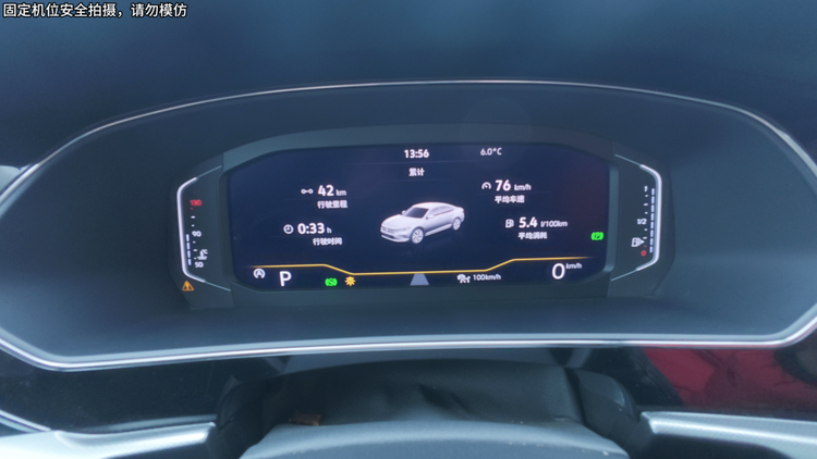 好了,下高速了。这车跑高速还是挺舒服的,就是有一点比较无语,没有车道保持,只有自适应巡航。人家丰田那边,卡罗拉都标配L2了,这一点,大众,该骂。那看一下现在的仪表显示,跑了42公里,现在的平均油耗是5.4L,因为我们上高速前,停车安装固定支架耽误点时间,所以平均时速显示的不高,实际高速上,我们是定速100跑的。