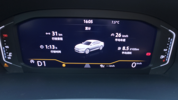 国道终于跑完了,刚才吐槽归吐槽,但实际油耗表现还是可以的。看一下仪表数据,总共跑了31公里,平均车速是42km/h,显示的平均油耗是7.1升。2.0T的哈,不是1.4T的,国道比高速费油,但还能接受。