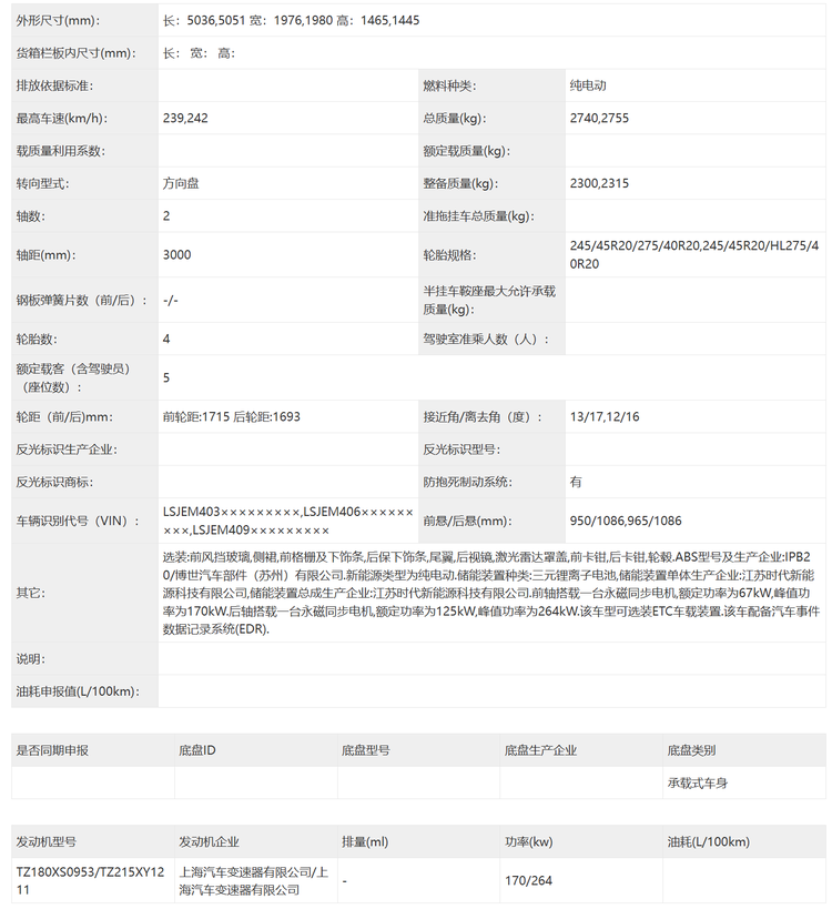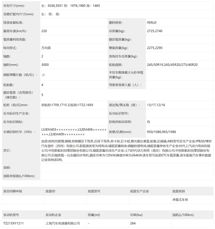 尺寸方面,新车的长宽高分别是5036(5051)/1976(1980)/1465(1445)mm,轴距为3000mm,定位应该是中大型车,轮胎方面有245/50 R19以及前245/45 R20、后275/40 R20两个版本可选。