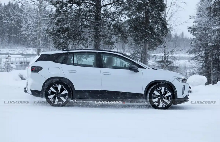 车身侧面依然能够看到Volkswagen ID.4的基本比例结构,包括短前悬、长轴距以及相对紧凑的车头设计。测试车谍照显示,新车整体轮廓并未发生明显变化,但在局部细节上进行了调整。