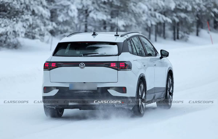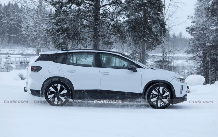 对比早前曝光的实际测试车照片,新车的侧面轮廓基本延续了现款ID.4的标志性线条,主要的改变集中于细节。例如,它换装了更传统的门把手设计,而非现有的隐藏式弹出门把手。同时,车身肩线的走向也显得更为平直。车辆尾部,贯穿式尾灯组得以保留,但其内部的光源结构预计会改用矩形排列,以提升辨识度。此外,后保险杠区域设计了非常显眼的扩散器造型,强调了车辆的性能属性。