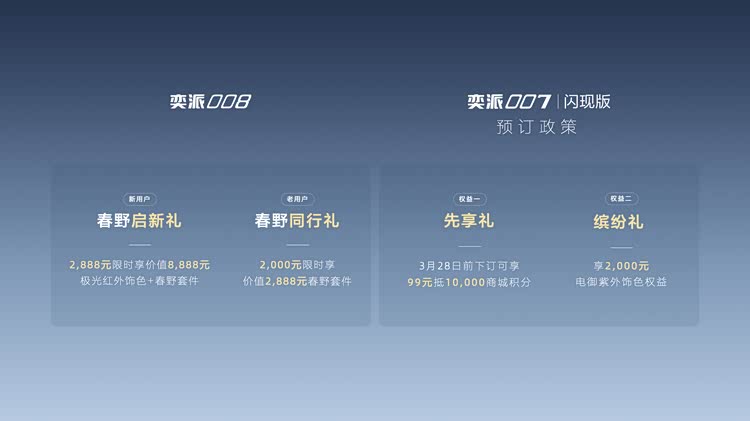 奕派008“极光红”全新车色由东风奕派与用户共创,并携手中国国家地理将阿勒泰红色极光复刻于车身,车漆质感通透且抗刮耐磨。以车顶横杆行李架+固定侧踏板+放电插排为组合的“春野套件”,全场景适配城市露营与户外穿越,解锁更自由的探索生活。为回馈新老用户支持,推出限时购车权益,新用户下订极光红外饰色绑定春野套件限时先享价2888元;老用户可在APP下订春野套件,限时回馈价2000元。此外,奕派008即将全系推送OTA 升级,在娱乐影音、行车安全、车机智能交互等方面,全面优化用车体验,为用户带来更安全、更好玩的用车体验。