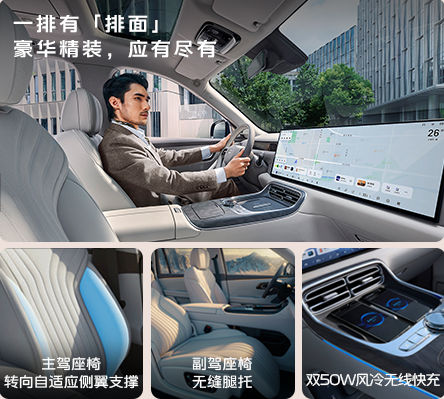 前排的“宠爱椅”和“撑腰座”也有讲究。副驾无缝腿托升起后,可以和坐垫形成170度夹角,午休躺平很舒服。主驾的转向自适应侧翼支撑,过弯时侧翼自动向内夹紧,把身体稳住;直线行驶时侧翼松开,减少束缚感。腰托支持4向调节,长途开车不累腰。