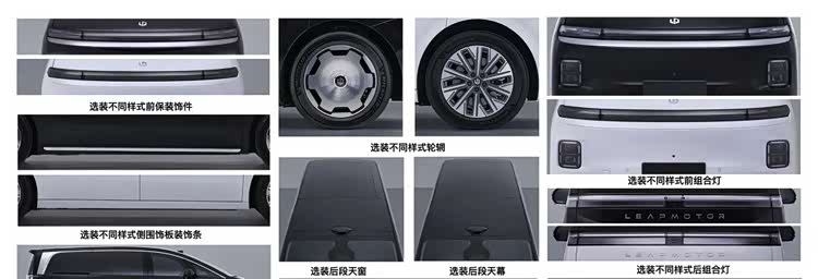 入门级车型的外观设计还是以简约为主,前脸采用了零跑家族化风格,尾灯也是与A10相似的元素。两款轮毂样式都比较好看,双色五辐设计都能提升整车视觉效果。配色部分提供了黑色车顶的双色搭配,预计会采用比较年轻的色彩风格。