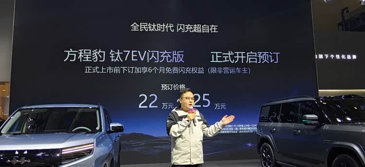 同期开启预订的钛7 EV闪充版,定位“全球首款闪充纯电大方盒”,预订价格区间22万-25万元,以更大空间、更强性能,覆盖中高端纯电市场需求。该车以70.9%超高得房率搭配47处储物巧思,完美适配家庭出行场景;CLTC纯电续航至高可达755km,双电机四驱综合功率515kW,动力输出强劲,顶配车型搭载激光雷达与大模型智能座舱,进一步提升智能出行体验。该车延续方程豹硬派基因与闪充优势,让用户在享受宽敞舒适空间的同时,彻底告别续航与补电焦虑。