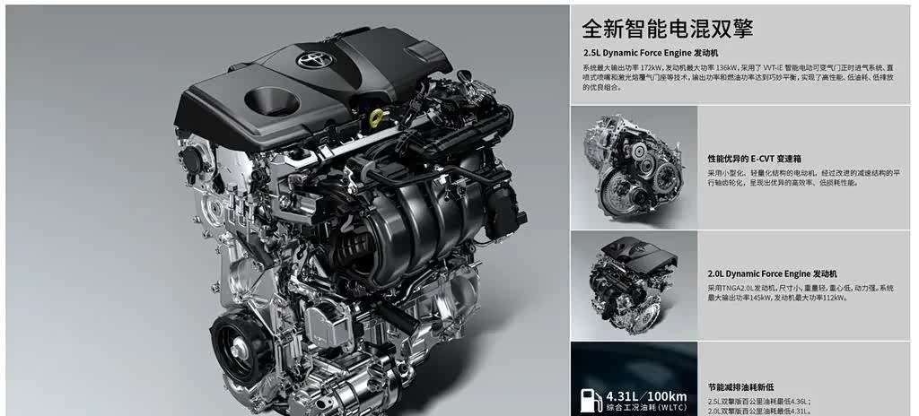 - 油电混动持续优化:第五代THS系统通过PCU能量控制单元升级,使镍氢电池效率提升15%