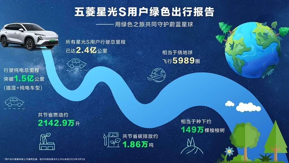 【2025年3月21日讯息】五菱献礼,5亿补贴大放送,品质出行首选五菱!为庆祝3月,五菱推出“购买星光S尊享至高48000元综合优惠”政策,不仅为用户带来丰厚的购车礼遇,更携手用户共同践行节能减排。正值2025年“地球一小时”活动之际,五菱发布《星光S用户绿色出行报告》,自上市以来,星光S用户的累计行驶总里程突破2.4亿公里,其中纯电行驶里程高达1.5亿公里,相当于减少碳排放达1.86万吨。五菱不仅致力于环保事业,更以卓越质量树立口碑,凭借先进技术树立行业标杆,全程贴心服务,为用户提供绿色出行的全方位保障。