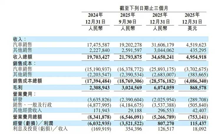 2025年第四季度,蔚来Non-GAAP经营利润12.5亿元,GAAP经营利润8.1亿元,首次实现单季度盈利。