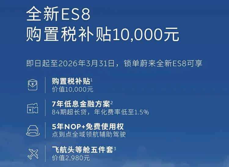 今年3月,蔚来又推出全新ES8万元购置税补贴,乐道品牌也跟进了购置税全兜底政策,全系至高补贴10262元。