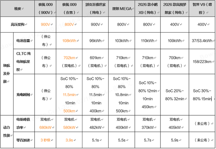 性能与智能驾驶层面,焕新极氪009将搭载全栈900V高压架构,电机总功率提升至680kW,折合925匹马力,动力性能超越多款高性能超跑。900V高压平台的全面应用,不仅为新车带来毫秒级动力响应与极致精准的操控体验,更实现了更高的安全冗余与更低的能耗表现,全方位刷新豪华纯电 MPV 的性能上限。
